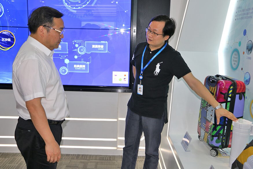 银河集团智能总裁龙飞为陈小华区长介绍公司产品